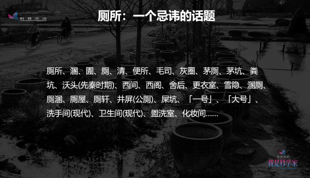 咱們都是文雅的人,通常我們講廁所的時候,很多人不講我去大便,我去小便。在從事廁所的群里,還有的人用“雪隱先生”。開始我也不明白,后來發(fā)現(xiàn)“雪隱先生”就是“廁所先生”,干跟廁所有關的事。
