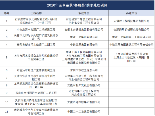 以下為近十年來獲得魯班獎(jiǎng)的水處理項(xiàng)目