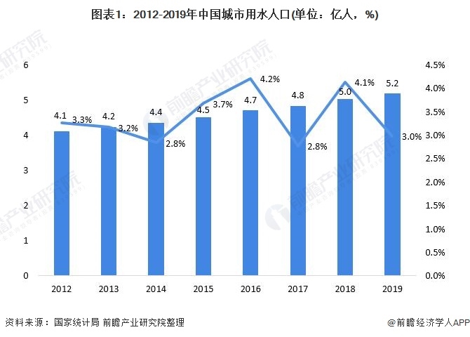 改革開放以來,隨著中國城市化進程的加快,我國城市用水人口總量將持續(xù)上升,水務行業(yè)的重要性日益凸顯。據(jù)國家統(tǒng)計局數(shù)據(jù)顯示,自2012年起我國城市用水人口穩(wěn)健增加,截至2019年底,我國城市用水人口達5.18億人,同比增長2.98%。