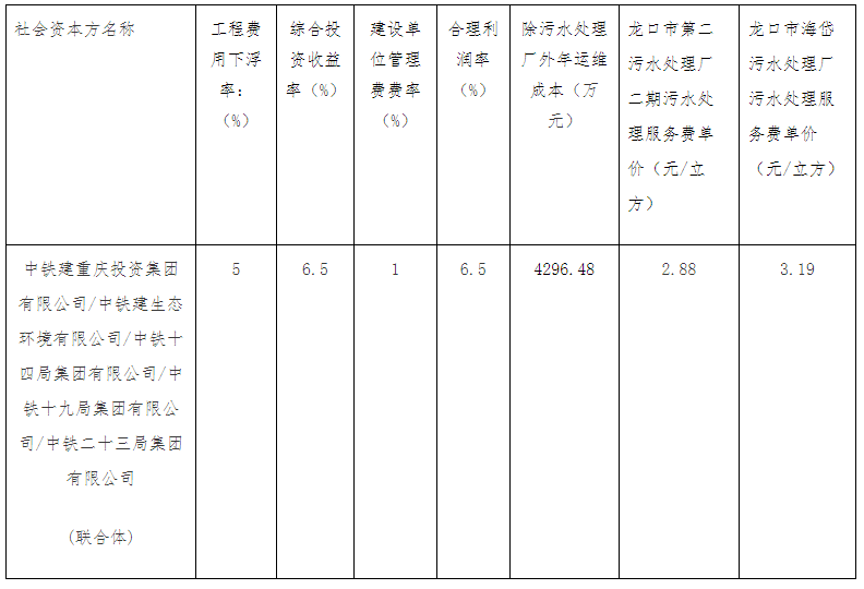 2021年6月23日,中鐵建重慶投資集團(tuán)有限公司/中鐵建生態(tài)環(huán)境有限公司/中鐵十四局集團(tuán)有限公司/中鐵十九局集團(tuán)有限公司/中鐵二十三局集團(tuán)有限公司(聯(lián)合體)預(yù)中標(biāo)山東省煙臺(tái)市龍口市人居環(huán)境提升工程PPP項(xiàng)目。