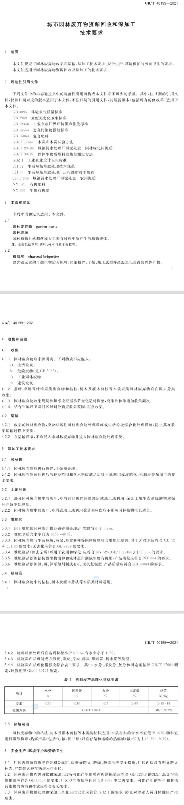 本文件規(guī)定了園林廢棄物收集和運輸、深加工技術(shù)要求、安全生產(chǎn)、環(huán)境保護與勞動衛(wèi)生的要求。