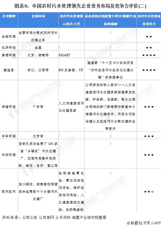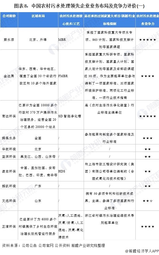 4、中國農(nóng)村污水處理行業(yè)企業(yè)布局及競爭力評價