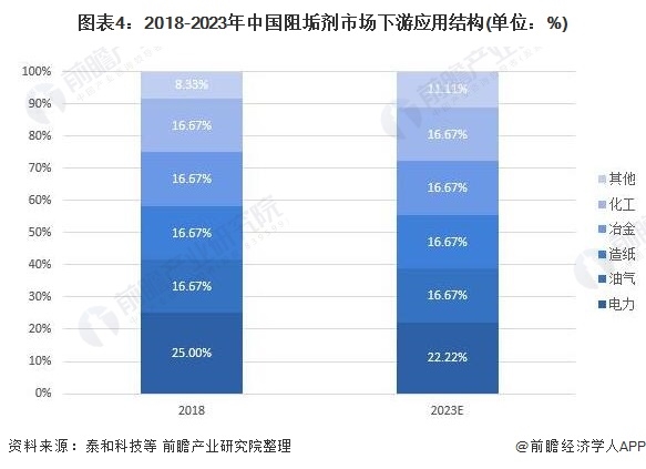 阻垢劑的應(yīng)用大大提高了循環(huán)水容納微溶鹽類的能力,不錯的溶解性及穩(wěn)定性幫助凈化了水資源,廣泛的應(yīng)用于各類水處理設(shè)備當(dāng)中。在我國,阻垢劑主要應(yīng)用于電力、造紙等工業(yè)的水治理中,其市場規(guī)模呈現(xiàn)增長趨勢,未來隨著工業(yè)循環(huán)水的處理需求增加,市場有望繼續(xù)增長。
