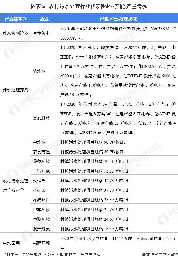 農(nóng)村污水處理行業(yè)代表性企業(yè)產(chǎn)能/產(chǎn)量/污水處理規(guī)模情況
