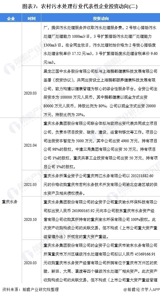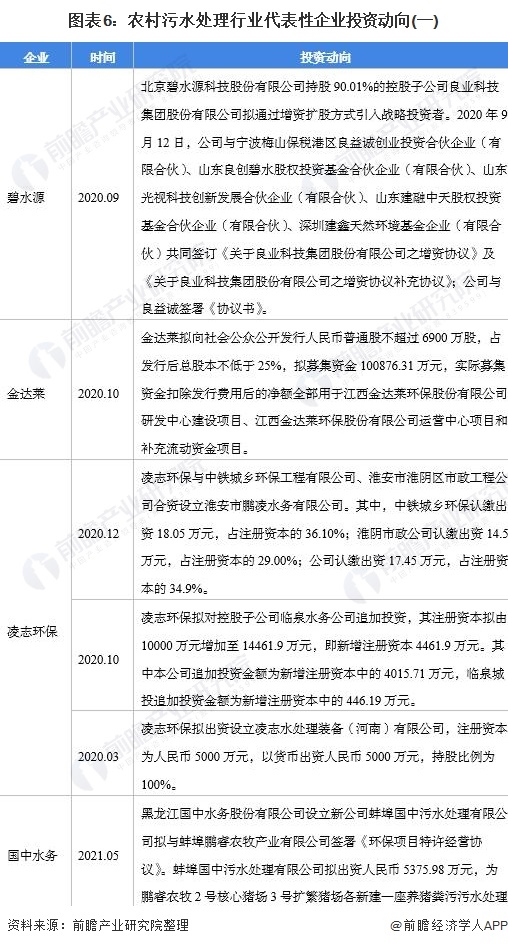 農(nóng)村污水處理行業(yè)代表性企業(yè)最新投資動向