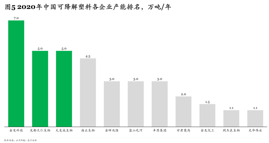 與此同時,各大廠商產(chǎn)能差距較小,市場份額排名前三的金發(fā)科技、龍都天仁生物、允友成生物2020年的產(chǎn)能也分別僅為7萬噸/年、5萬噸/年、5萬噸/年??梢哉f,誰能搶在前頭完成產(chǎn)能布局,誰就有可能搶占先機獲取更大份額,后來居上并非難事。
