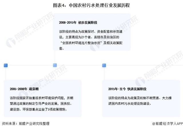 2015之后為快速發(fā)展階段,該階段的特點(diǎn)為政策及機(jī)制不斷完善、大力推進(jìn)國內(nèi)農(nóng)村污水處理設(shè)施建設(shè)。