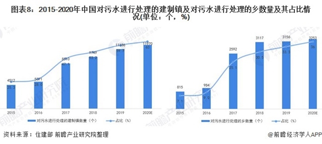 此外,全國農(nóng)村地區(qū)對(duì)污水進(jìn)行處理的建制鎮(zhèn)及鄉(xiāng)數(shù)量不斷增加。截止2019年底,對(duì)污水進(jìn)行處理的建制鎮(zhèn)及鄉(xiāng)的數(shù)量分別為11186個(gè)和3156個(gè);截止2020年底,及鄉(xiāng)的數(shù)量分別為11970個(gè)和3253個(gè)。