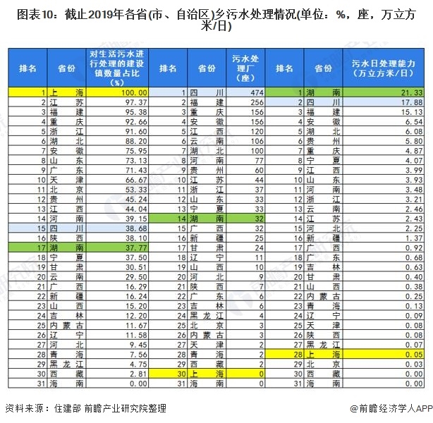 1、區(qū)域競(jìng)爭(zhēng):四川農(nóng)村污水處理廠數(shù)量最多,海南并未有鄉(xiāng)進(jìn)行生活污水處理