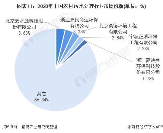 目前,我國農(nóng)村污水處理行業(yè)參與者較多,但是市場(chǎng)主要參與者類型與城鎮(zhèn)污水處理略有不同。農(nóng)村污水處理主要參與者大多為國有企業(yè)和民營企業(yè),城鎮(zhèn)污水處理參與者除了這兩大類企業(yè)外,國際水務(wù)巨頭在市場(chǎng)上也占據(jù)著重要地位。