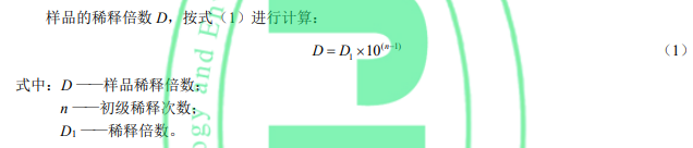用量筒(6.6)取第 n−1 次初級稀釋的試料,按照表 1 的稀釋方法由小到大逐級按自然倍數(shù)進(jìn)行稀 釋,每稀釋 1 次,混勻后按目視比色方法(8.3)觀察,直到剛好與水(5)無法區(qū)別時停止稀釋,記錄稀釋倍數(shù) D1。