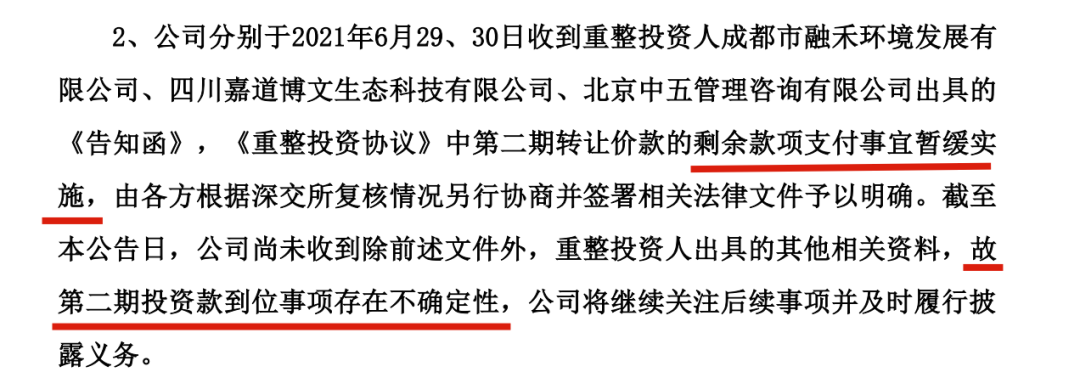 但如天翔環(huán)境近日披露,現(xiàn)在小國資們也出現(xiàn)了猶豫,目前已暫停打款。盡管已經(jīng)是白菜價接盤,但這個雷實在是太大,坑實在是太多,接完盤能不能玩轉(zhuǎn)?大家現(xiàn)在心理都沒底。