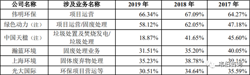 注:綠色動(dòng)力從2018年年報(bào)開始將項(xiàng)目運(yùn)營(yíng)業(yè)務(wù)毛利率調(diào)整為披露固廢處理業(yè)務(wù)毛利率,相關(guān)披露口徑存在一定變化;中國(guó)天楹2019年垃圾處理業(yè)務(wù)毛利率變化主要系2019年1月完成固廢管理業(yè)務(wù)收購(gòu)所致。