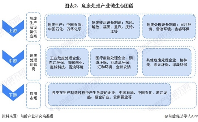 除危險廢物生產(chǎn)外,危廢處理行業(yè)上游還包括各類危廢轉(zhuǎn)運設(shè)備以及處理設(shè)備制造行業(yè),為危廢處理提供基礎(chǔ)條件,轉(zhuǎn)運設(shè)備代表企業(yè)有東風(fēng)、解放、福田、重汽、慶鈴、江鈴等;危廢處理設(shè)備制造代表企業(yè)有日月環(huán)境、雪浪環(huán)境、鑫睿環(huán)保等。