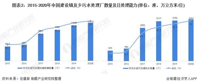 事實(shí)上,雖然國家近年來積極推動(dòng)農(nóng)村污水處理,但是“十三五”時(shí)期我國農(nóng)村污水處理并未達(dá)到規(guī)劃目標(biāo)。前瞻初步估計(jì),截止2020年底,我國建設(shè)鎮(zhèn)及鄉(xiāng)污水處理廠數(shù)量分別為11970座和1952座;我國建設(shè)鎮(zhèn)及鄉(xiāng)污水日處理能力分別達(dá)到了2753萬立方米/日和115萬立方米/日。