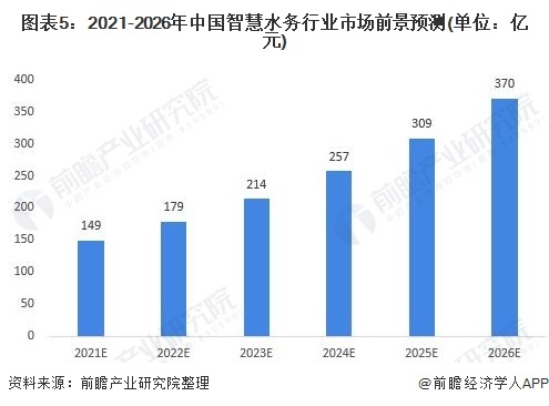 隨著我國(guó)智慧城市建設(shè)的推進(jìn),供水現(xiàn)狀、以及水務(wù)管理中存在的問(wèn)題(包括水務(wù)管理過(guò)程中控制漏損等問(wèn)題),為智慧水務(wù)營(yíng)造了發(fā)展環(huán)境。而智慧水務(wù)還有很大的市場(chǎng)可開發(fā),如智慧水務(wù)行業(yè)的發(fā)展正在積極探索如何實(shí)現(xiàn)與人工智能的結(jié)合,進(jìn)一步實(shí)現(xiàn)人機(jī)交互的綜合應(yīng)用,未來(lái)我國(guó)智慧水務(wù)前景可觀。預(yù)計(jì)到2026年,我國(guó)智慧水務(wù)行業(yè)的市場(chǎng)規(guī)模將達(dá)到370億元。