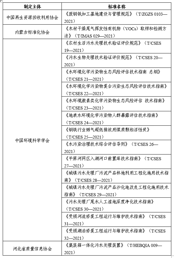 表:7月生態(tài)保護(hù)和環(huán)境治理類團(tuán)體標(biāo)準(zhǔn)名錄