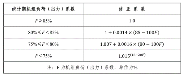 表2 常規(guī)燃煤純凝發(fā)電機(jī)組負(fù)荷(出力)系數(shù)修正系數(shù)