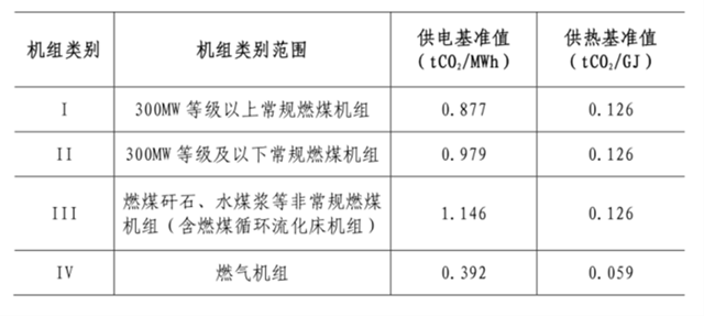 表1 2019-2020年各類別機(jī)組碳排放基準(zhǔn)值