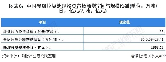 3、中國(guó)餐廚垃圾處理投資市場(chǎng)新增空間達(dá)到1558.73億元