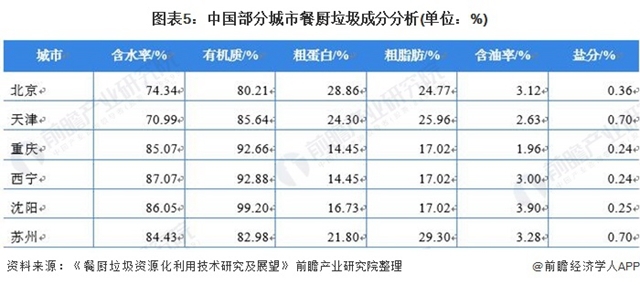 值得一提的是,在南京大學(xué)和香港浸會(huì)大學(xué)發(fā)表的論文《餐廚垃圾資源化利用技術(shù)研究及展望》中發(fā)現(xiàn),中國不同城市的餐廚垃圾的性質(zhì)有一定的差異,原因很可能是和當(dāng)?shù)氐纳詈惋嬍沉?xí)慣有關(guān);因此在資源化利用的過程中,不同的城市的餐廚垃圾中各組分特點(diǎn)應(yīng)被充分考慮,在選擇垃圾處理技術(shù)時(shí)選擇最適合的處理方法。
