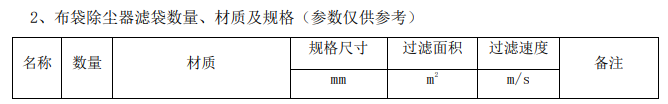 注:乙方應(yīng)到現(xiàn)場(chǎng)仔細(xì)核實(shí)濾袋及籠骨的具體規(guī)格尺寸。