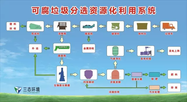 以浙江三門縣鄉(xiāng)鎮(zhèn)垃圾處理項目為案例,該項目技術最大特點為具有優(yōu)良的分選技術——二次分類自動化。可以在村民初分的基礎上,經機械自動精細分選,可選出90%以上的可腐爛垃圾,彌補現(xiàn)階段人工分類的不足。前端分選分類工程是三態(tài)的研究重點之一,其開發(fā)了小型前端智能分類、大型后端機械分類。厭氧發(fā)酵工藝也是三態(tài)體系中的重點技術,目前吉林項目已運行三年多,是國內較為大型的混合垃圾厭氧發(fā)酵穩(wěn)定運行的唯一一家。
