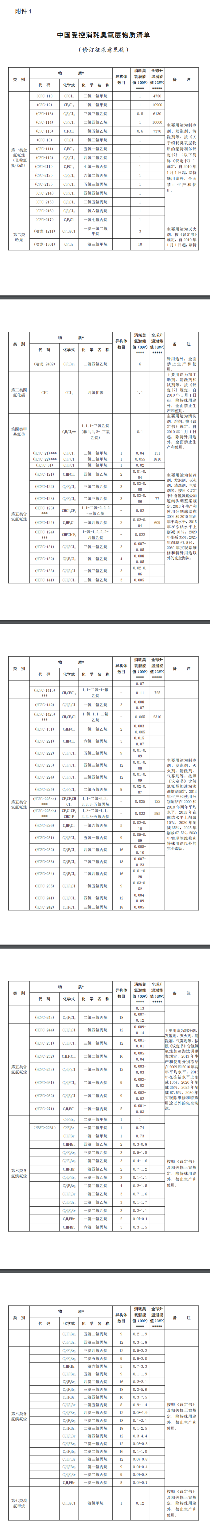 相關資料下載:《中國受控消耗臭氧層物質(zhì)清單(修訂征求意見稿)》修訂說明.pdf