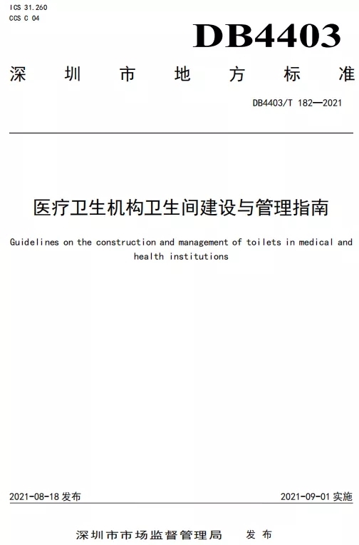 8月18日,深圳市市場監(jiān)督管理局發(fā)布了《醫(yī)療衛(wèi)生機(jī)構(gòu)衛(wèi)生間建設(shè)與管理指南》(DB4403/T 182—2021)標(biāo)準(zhǔn),該標(biāo)準(zhǔn)由深圳市醫(yī)院管理者協(xié)會提出,深圳市衛(wèi)生健康委員會歸口管理,由中國城市環(huán)鏡衛(wèi)生協(xié)會全國公廁建設(shè)管理專業(yè)委員會,和相關(guān)會員單位,以及其他相關(guān)單位一起參與編制。