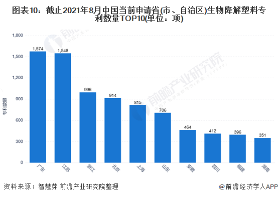 中國方面,廣東為中國當(dāng)前申請生物降解塑料專利數(shù)量最多的省份,累計(jì)當(dāng)前生物降解塑料專利申請數(shù)量高達(dá)1574項(xiàng)。廣東和江蘇當(dāng)前申請生物降解塑料專利數(shù)量均超過1500項(xiàng)。中國當(dāng)前申請省(市、自治區(qū))生物降解塑料專利數(shù)量排名前十的省份還有浙江、北京、上海、山東、安徽、四川、福建、湖南。