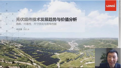 隆基樂葉光伏高級(jí)產(chǎn)品經(jīng)理李紹唐博士帶來了主題為《光伏組件技術(shù)發(fā)展趨勢(shì)與價(jià)值分析——效率,可靠性,尺寸優(yōu)化與發(fā)電性能》的分享
