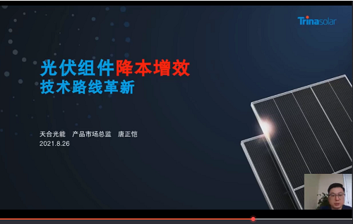 天合光能產(chǎn)品市場(chǎng)總監(jiān)唐正愷總監(jiān),帶來了主題為《光伏系統(tǒng)降本增效技術(shù)路線革新》的分享。
