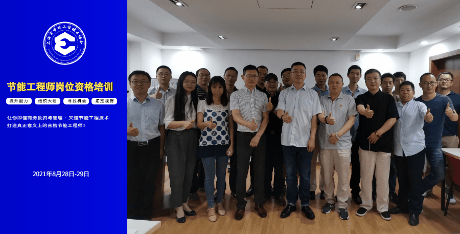 2021年8月28-29日由上海市節(jié)能工程技術(shù)協(xié)會舉辦的節(jié)能工程師崗位資格培訓(xùn)圓滿結(jié)束。每位學(xué)員收獲的不僅僅是節(jié)能工程師證書,而且還有一套可以讓學(xué)員落地實(shí)施的多方位節(jié)能與綜合能源服務(wù)解決方案!一次培訓(xùn),三年服務(wù)。