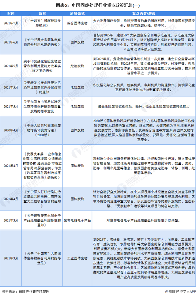 “十四五”規(guī)劃期間針對(duì)固廢處理行業(yè)部分的政策解讀