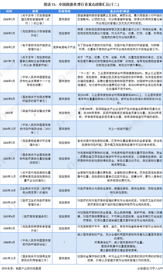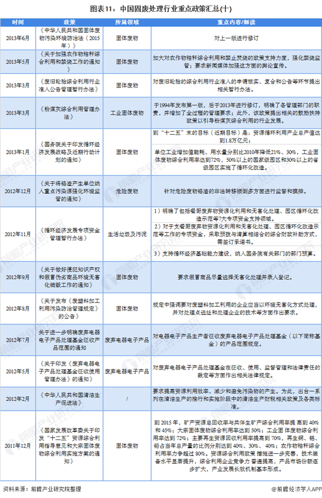 國(guó)家層面固廢處理政策歷程及匯總