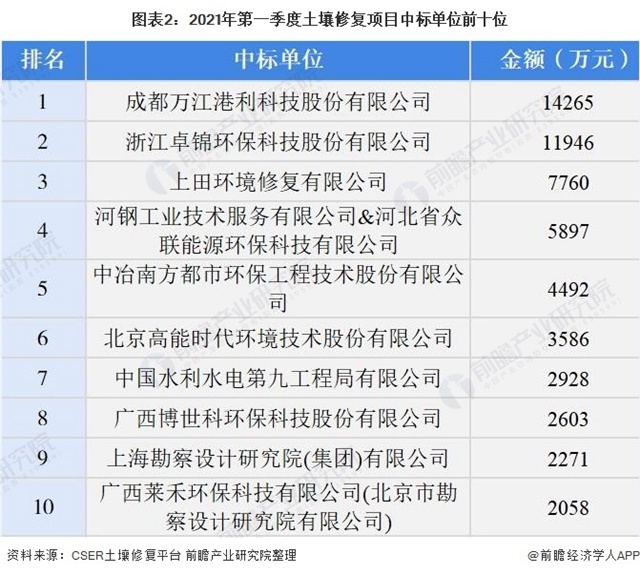 2、中國土壤修復項目中標單位排名