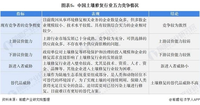 5、中國土壤修復行業(yè)競爭狀態(tài)總結