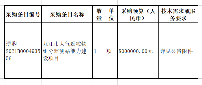 項(xiàng)目名稱:九江市大氣顆粒物組分監(jiān)測(cè)站能力建設(shè)項(xiàng)目