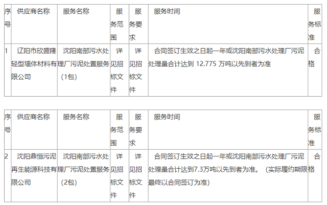 原標(biāo)題:沈陽(yáng)振興環(huán)保有限公司沈陽(yáng)南部污水處理廠污泥處置服務(wù)中標(biāo)公告