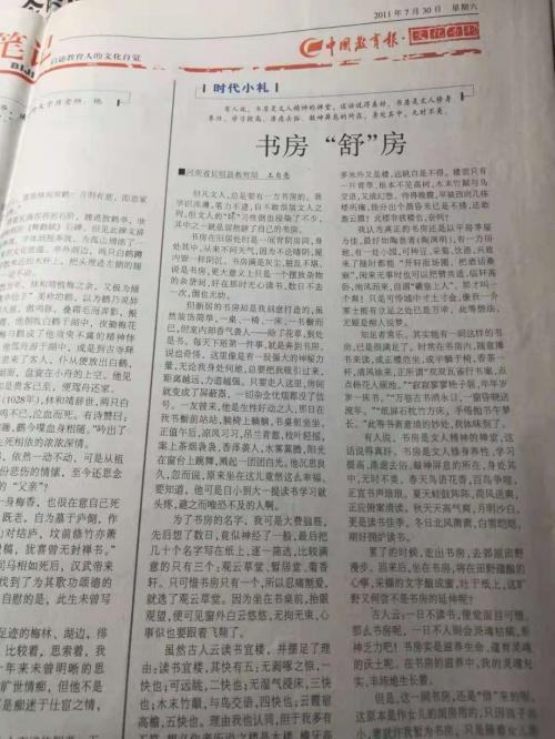 1997年,在校園文學刊《蒲園》發(fā)表文章,2008年,在《新鄉(xiāng)日報》發(fā)表文章,2011年來,接連在《中國教育報》《中國教師報》《工人日報》《中國紀檢監(jiān)察報》《文匯報》《科學時報》《中國建材報》《思維與智慧》《讀者》《青年文摘》《牧野文學》等發(fā)表作品,2012年,《山寺之夜》在《人民日報》大地副刊發(fā)表,問鼎國家第一大報的文學圣殿……作品接連在各大報刊發(fā)表,他的創(chuàng)作達到了一個小高潮。贏得了一點小小的聲名,各種贊譽也隨之而來。但只有他自己,明白那其中的苦辛:每日早起晚睡,眼熬紅了,發(fā)變稀了,不敢笑,一笑,眼角就是深深的皺紋。頗類于韓愈的“口不絕吟于六藝之文,手不停披于百家之編。”“焚膏油以繼晷,恒兀兀以窮年。”當十多年不見的同學見到他的照片,驚嘆:天啊,到底經歷了什么?把以往的小鮮肉摧殘成這般模樣。對此,他淡然一笑,有痛,更多的是充實和欣慰。他堅信,他的付出是值得的。