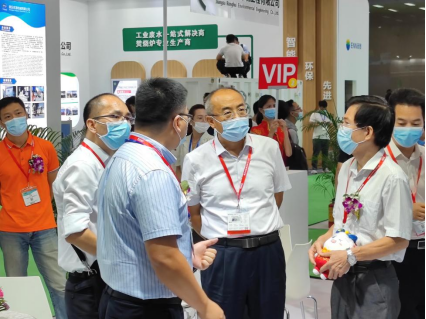 展會首日,廣東省人大環(huán)境與資源保護委員會副主任何真、廣東省生態(tài)環(huán)境二級巡視員鄧繼勇等領(lǐng)導(dǎo)組成的貴賓參觀團蒞臨朗坤環(huán)境展位參觀。