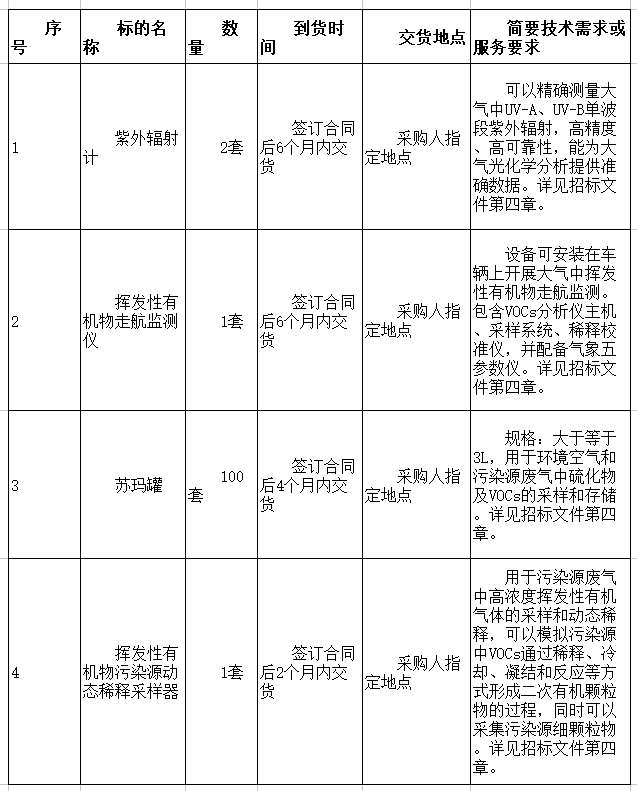 北京市揮發(fā)性有機(jī)物解析能力建設(shè)一期(中央資金)-污染源監(jiān)測(cè)設(shè)備購(gòu)置公開(kāi)招標(biāo)公告