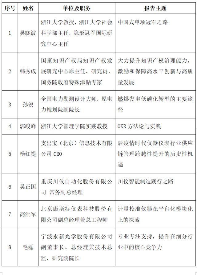 附件1:2021年儀器儀表產(chǎn)業(yè)發(fā)展峰會報告主題