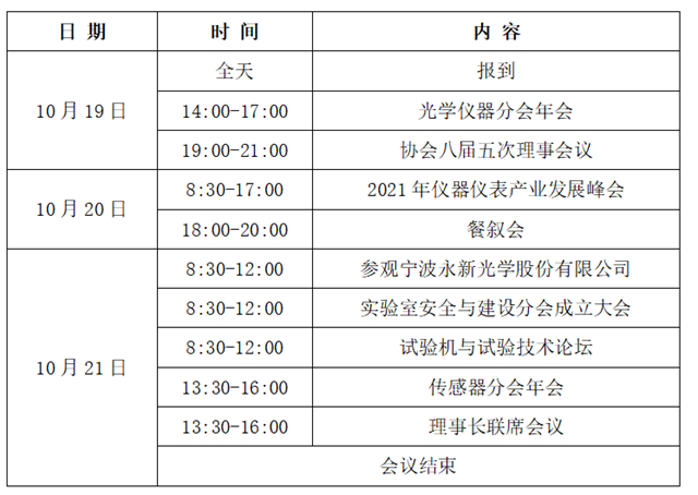 中國儀器儀表行業(yè)協(xié)會(以下簡稱“協(xié)會”)定于2021年10月19日-21日在浙江省寧波市召開2021年儀器儀表產(chǎn)業(yè)發(fā)展峰會暨協(xié)會八屆五次理事會議。本次會議由中國儀器儀表行業(yè)協(xié)會主辦,寧波永新光學股份有限公司、寧波水表(集團)股份有限公司協(xié)辦。