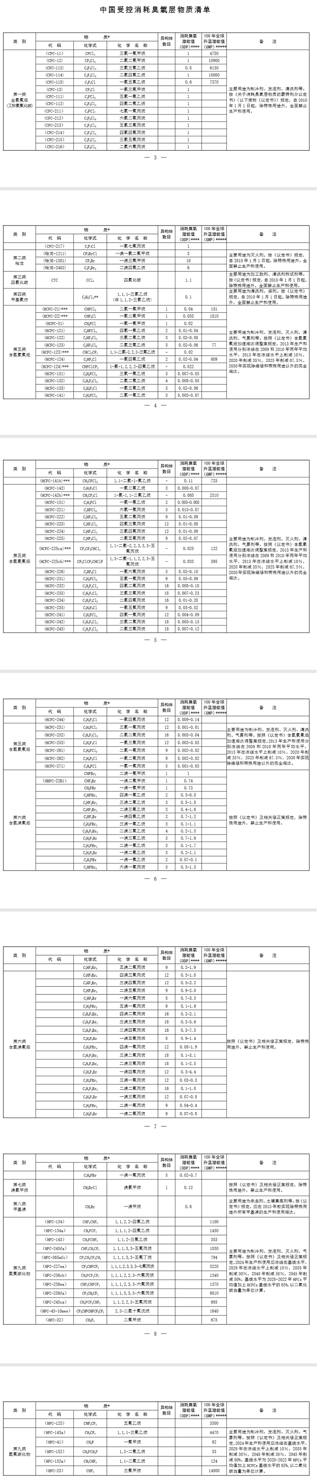 附件:中國受控消耗臭氧層物質(zhì)清單