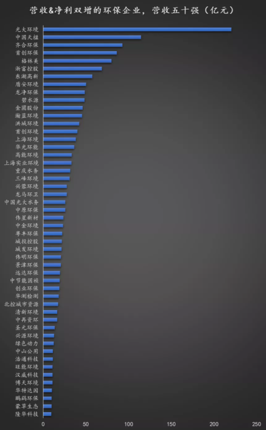 原標(biāo)題:122家營收&凈利雙增的環(huán)保企業(yè)中,營收50強都是誰?