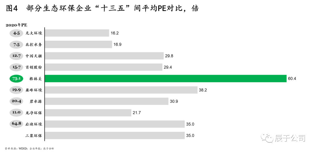 定好估值中樞。不同行業(yè)的估值中樞相差較大,而上市公司定性具有一定的靈活性,可從主營(yíng)業(yè)務(wù)、收入和利潤(rùn)、關(guān)鍵成功要素、資產(chǎn)分類等角度入手為公司調(diào)性確定合理定位。例如素有“節(jié)能環(huán)保老兵”之稱的格林美,主營(yíng)業(yè)務(wù)為廢棄資源回收利用和鈷鎳產(chǎn)品,考慮到金屬新材料所在領(lǐng)域近年較為火熱,估值中樞在較高水平,其積極轉(zhuǎn)型選取該行業(yè)作為估值中樞,在資本市場(chǎng)上可比估值公司為華友鈷業(yè)、寧德時(shí)代等估值較高的公司,因而相比于生態(tài)環(huán)保企業(yè),其估值處于領(lǐng)先位置(見(jiàn)圖4)。