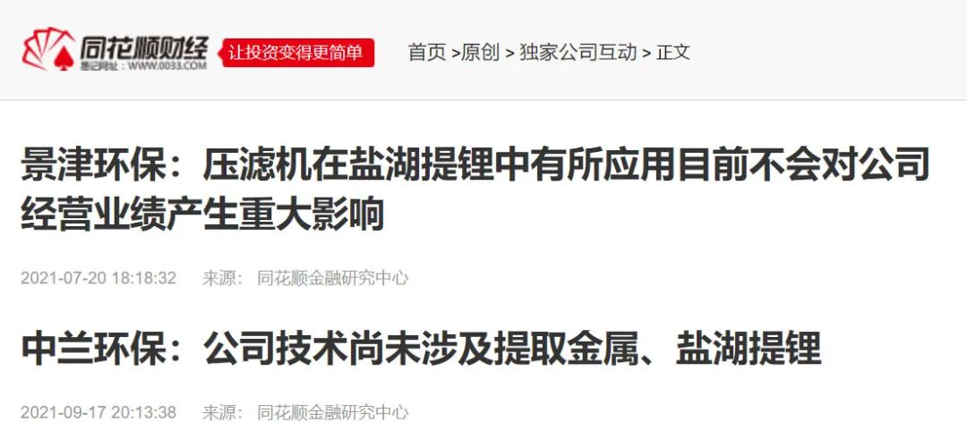 4、鵬鷂環(huán)保:公司沒(méi)有鹽湖提鋰相關(guān)業(yè)務(wù),同花順財(cái)經(jīng),2021-09-22