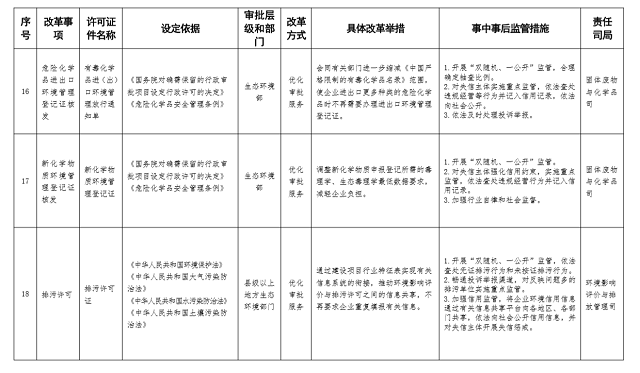 附件:中央層面設(shè)定的生態(tài)環(huán)境領(lǐng)域涉企經(jīng)營(yíng)許可事項(xiàng)改革舉措表