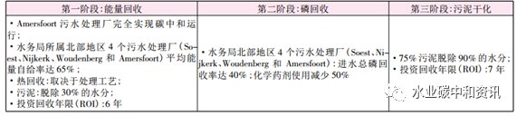 NEWs發(fā)展的終極目標(biāo)是在同一污水處理廠內(nèi)實(shí)現(xiàn)營(yíng)養(yǎng)物、能源和水三位一體生產(chǎn)。Vallei & Eem 水務(wù)局計(jì)劃以Amersfoort污水處理廠為案例,探求新技術(shù)與新工藝,以使污水廠至少能達(dá)到能量自給自足的水平。具體目標(biāo)是2014年Amersfoort污水廠將以能量工廠方式運(yùn)行,除能量回收外,營(yíng)養(yǎng)物(N、P)也予以回收利用。同時(shí)Vallei&Eem水務(wù)局與荷蘭應(yīng)用水研究基金會(huì)(STOWA)已開始執(zhí)行Omzet-Amersfoort合作計(jì)劃(2011——2016),這一計(jì)劃主要在Amersfoort污水廠中實(shí)施,將其轉(zhuǎn)化為能源與資源回收工廠。其預(yù)期結(jié)果見(jiàn)下表。